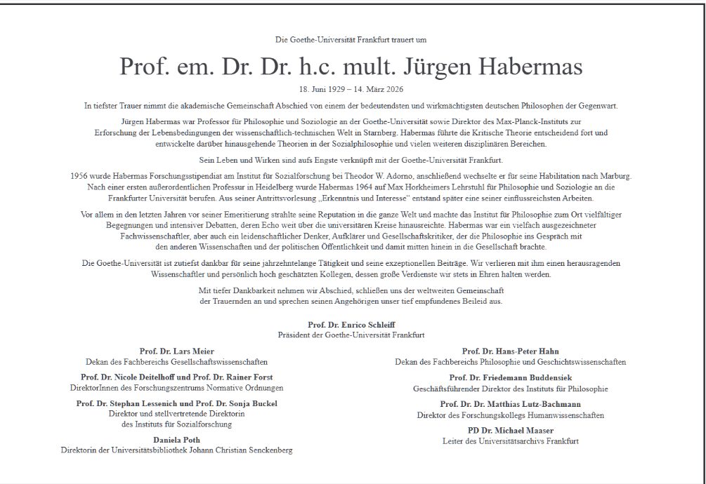 Jürgen Habermas am 13. März 2026 verstorben