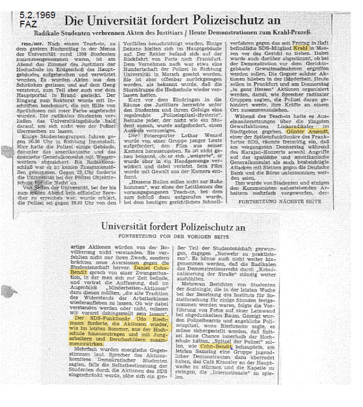 Der Polizeispitzelvorwurf von Udo Riechmann am 6. Februar 1969